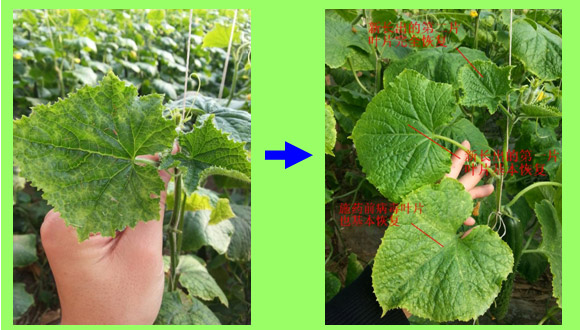 小抗在拜訪有機(jī)基地時發(fā)現(xiàn),有些棚內(nèi)的黃瓜出現(xiàn)把特別長的現(xiàn)象,是缺水缺肥所致,有機(jī)生產(chǎn)中通常會出現(xiàn)營養(yǎng)缺乏的現(xiàn)象,近期氣溫回升,植株生長較快,營養(yǎng)需求較大,不僅要多補(bǔ)充葉面肥,還要增加生長調(diào)節(jié)劑的施用,使用太抗?幾丁聚糖可有效減輕這種生理性病癥。