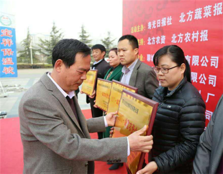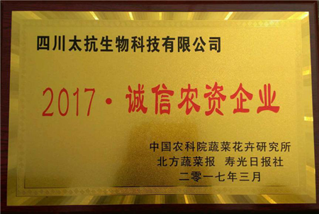 乘著315國際消費(fèi)者權(quán)益日之東風(fēng),借力第十八屆中國(壽光)國際蔬菜科技博覽會(huì)開幕在即之勢,2017年3月18日上午,由壽光日報(bào)社、北方蔬菜報(bào)主辦,中國農(nóng)科院蔬菜花卉研究所協(xié)辦的“第七屆春季百萬農(nóng)資惠農(nóng)展暨品牌農(nóng)資頒獎(jiǎng)典禮”在中國(壽光)國際會(huì)展中心隆重舉行,太抗生物在頒獎(jiǎng)典禮上榮獲“2017·誠信農(nóng)資企業(yè)”獎(jiǎng)。
