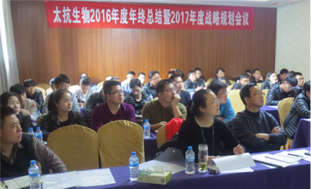會上,公司各區(qū)域負責人就2016年的銷售情況做了總結匯報,全年總銷量比去年增長70%,太抗在各區(qū)域的品牌影響力顯著提升,尤其是今年新上市的產(chǎn)品——枯芽春?枯草芽孢桿菌在云南區(qū)域熱賣得到了代理商的極大肯定和全力推廣,太抗哈茨木霉菌也一度出現(xiàn)供不應求的斷貨現(xiàn)象;各銷售精英紛紛上臺分享了在工作中遇到的難題及解決方法,用自身一段段經(jīng)歷證實了那句話:賣產(chǎn)品,首先要賣的是自己。只有自身的專業(yè)知識讓客戶信服,只有自己的敬業(yè)精神讓客戶滿意,只有自己的不辭辛勞讓客戶認可,才能讓客戶從心底里接受并信任我們的產(chǎn)品;技術經(jīng)理們也用一系列實實在在的圖片數(shù)據(jù)講解了一年來各室內、大田試驗結果,提煉出太抗系列產(chǎn)品的新賣點。